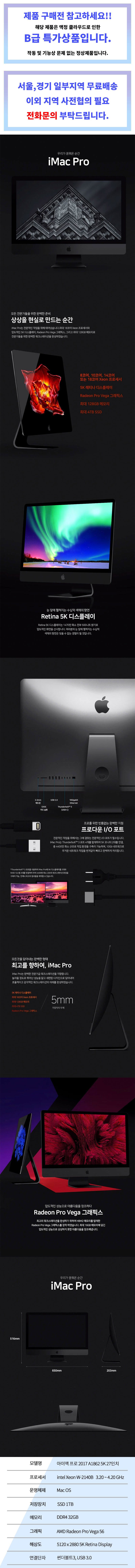 애플 아이맥 프로 27인치 5K A1862 제온 W-2140B 32G SSD 1TB Radeon Pro Vega 56 워크스테이션 액정 클라우드 B급 특가 상품